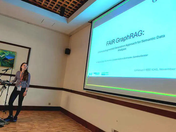 COMSYS researcher Marlena Flüh presented her work on FAIR graph retrieval-augmented generation at the IEEE International Conference on Knowledge Graphs (ICKG) 2025 in Limassol, Cyprus.