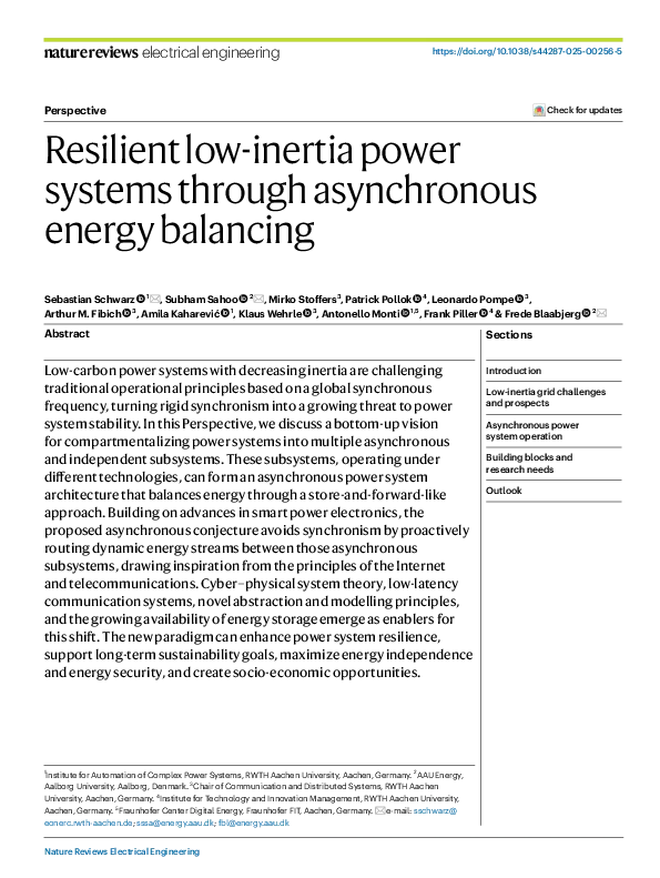 The perspective developed in the publication forms the scientific basis for the ERC Synergy Grant project SAFEr Grid, which is coordinated by RWTH Aachen University. In this innovative research project, researchers from RWTH Aachen University and Aalborg University are working to translate the theoretical concepts into robust models, novel control principles and real technical solutions and applications. The project is one of the most demanding funding lines of the European Research Council and was assessed in a peer review process as both visionary and realistic. The article now published confirms this assessment and shows a long-term viable path for a stable, secure and sustainable European energy supply.
